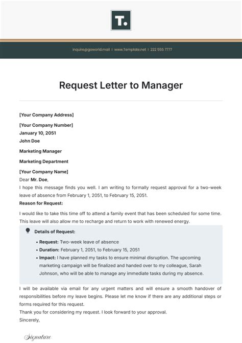 how to write a request letter to manager