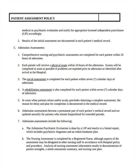 medical assessment examples