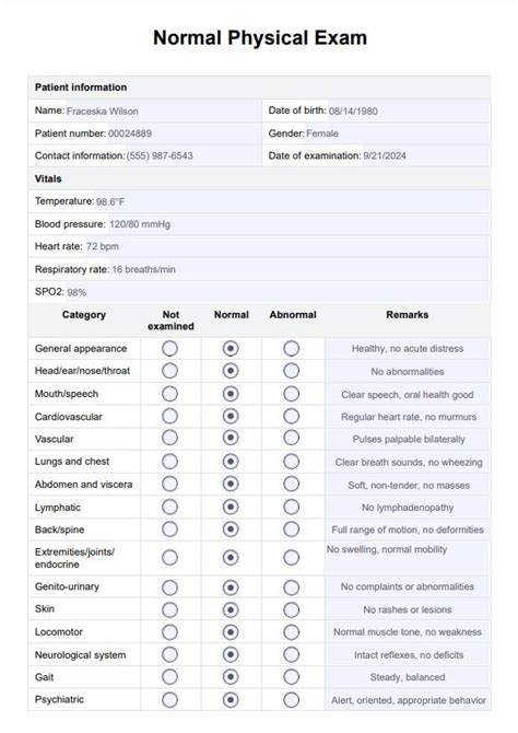 normal female physical exam template