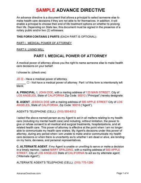 what is advance directives example